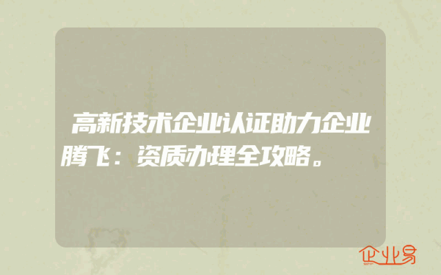 - 高新技术企业认证助力企业腾飞:资质办理全攻略。