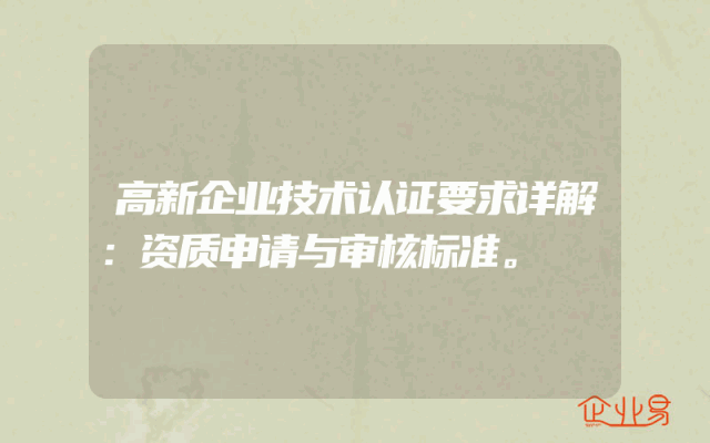 - 高新企业技术认证要求详解:资质申请与审核标准。