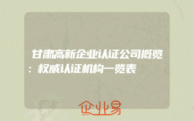 - 甘肃高新企业认证公司概览:权威认证机构一览表
