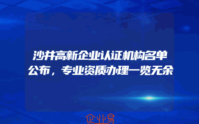 - 沙井高新企业认证机构名单公布,专业资质办理一览无余