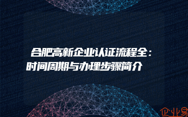 - 合肥高新企业认证流程全:时间周期与办理步骤简介