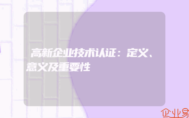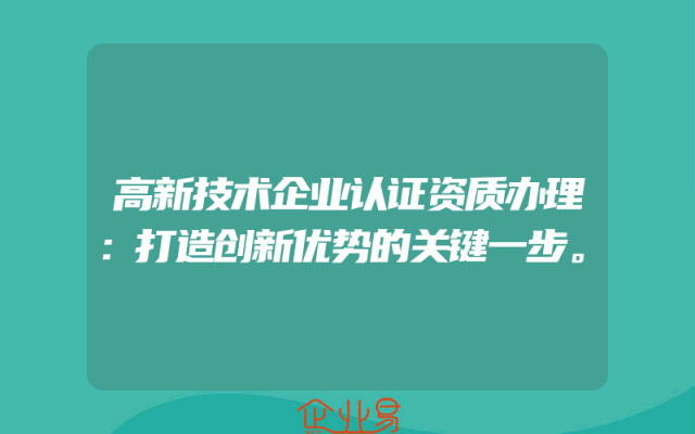- 高新技术企业认证资质办理:打造创新优势的关键一步。
