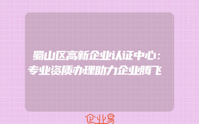 - 蜀山区高新企业认证中心:专业资质办理助力企业腾飞