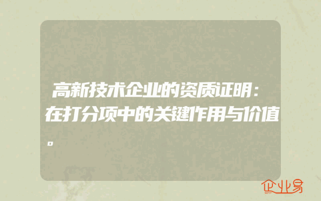 - 高新技术企业的资质证明:在打分项中的关键作用与价值。