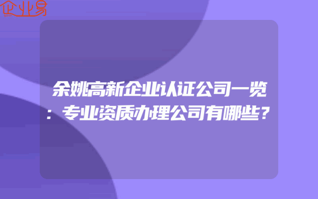 - 余姚高新企业认证公司一览:专业资质办理公司有哪些?