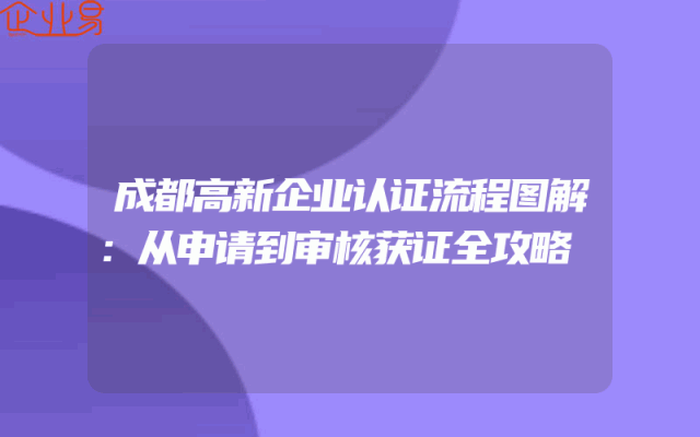 - 成都高新企业认证流程图解:从申请到审核获证全攻略一、了解高新企业认证及其重要性高新企业认证是中国为了鼓励科技创新和产业发展而设立的一项重要认证。对于在成都的企业来说,获得高新企业认证不仅意味着能够享受到政府的一系列优惠政策和资金支持,更是企