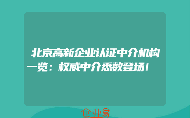 - 北京高新企业认证中介机构一览:权威中介悉数登场!