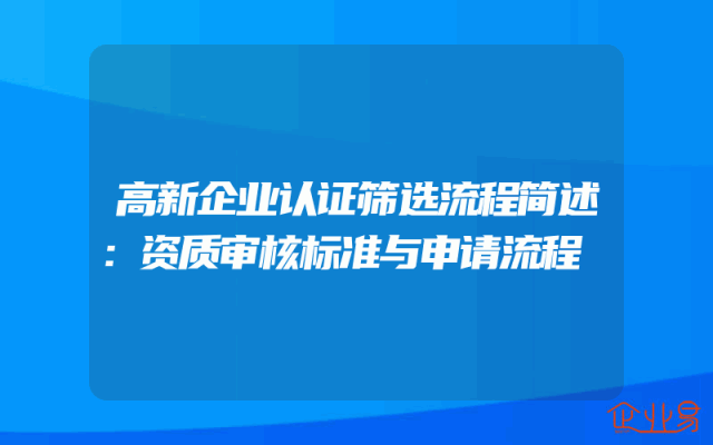 - 高新企业认证筛选流程简述:资质审核标准与申请流程