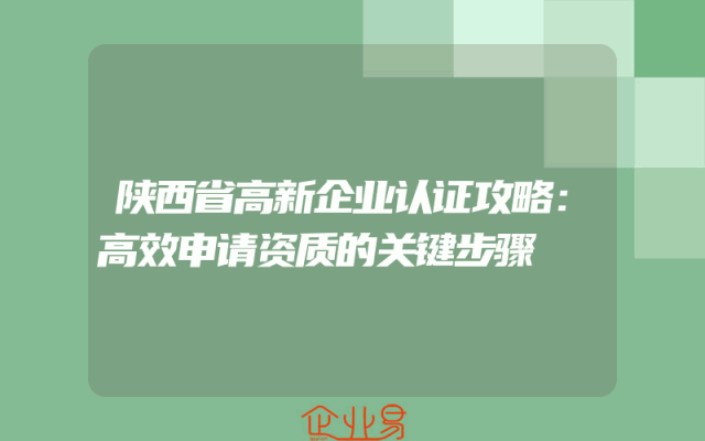 - 陕西省高新企业认证攻略:高效申请资质的关键步骤
