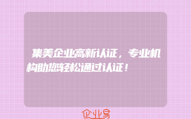 - 集美企业高新认证,专业机构助您轻松通过认证!