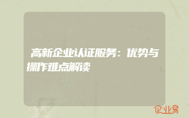 - 高新企业认证服务:优势与操作难点解读
