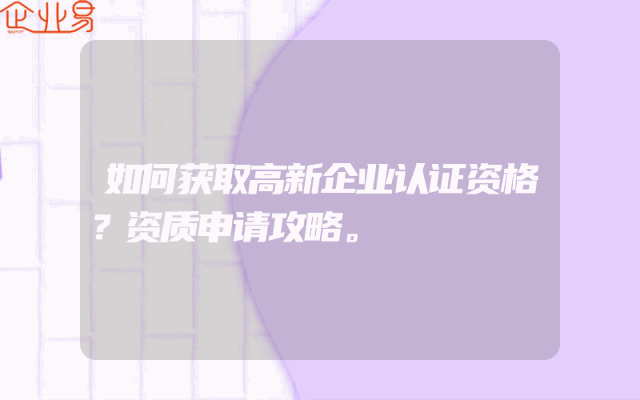 - 如何获取高新企业认证资格?资质申请攻略。