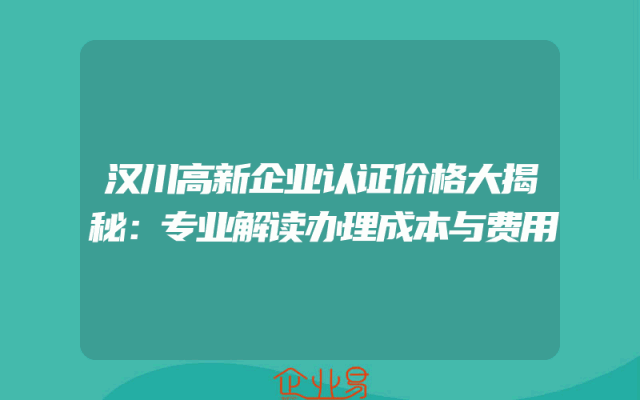 - 汉川高新企业认证价格大揭秘:专业解读办理成本与费用