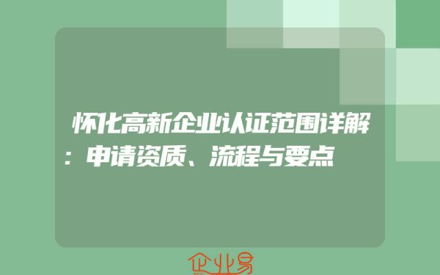 - 怀化高新企业认证范围详解:申请资质、流程与要点