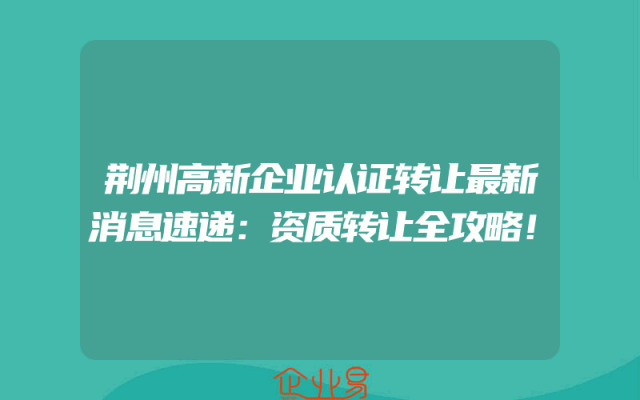 - 荆州高新企业认证转让最新消息速递:资质转让全攻略!