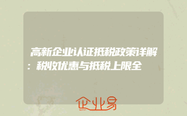 - 高新企业认证抵税政策详解:税收优惠与抵税上限全