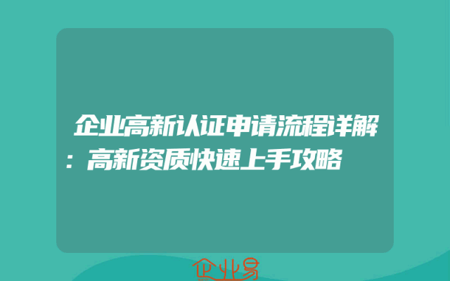 - 企业高新认证申请流程详解:高新资质快速上手攻略