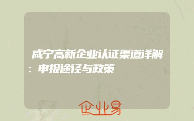 - 咸宁高新企业认证渠道详解:申报途径与政策