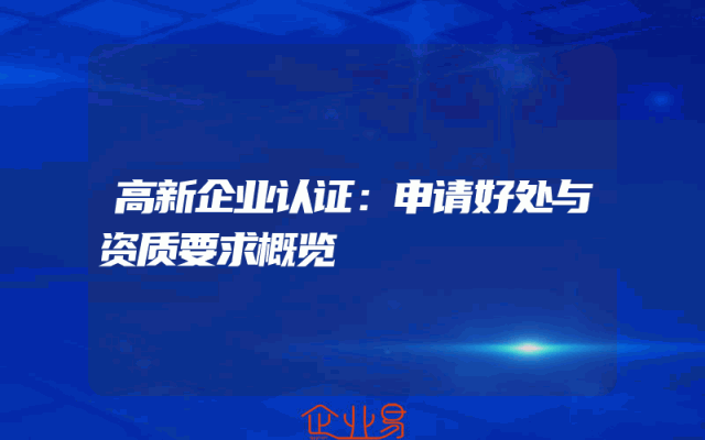 - 高新企业认证:申请好处与资质要求概览