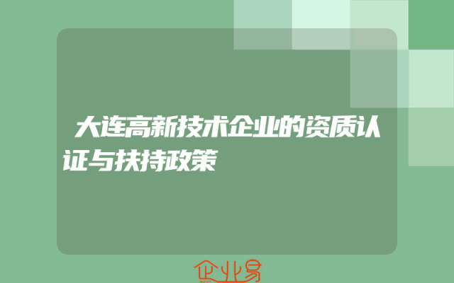 - 大连高新技术企业的资质认证与扶持政策