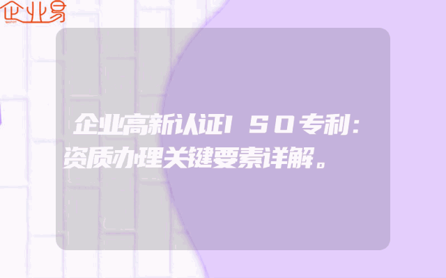 - 企业高新认证ISO专利:资质办理关键要素详解。