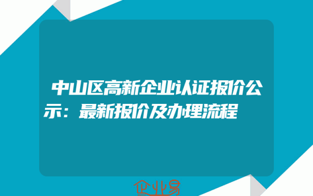 - 中山区高新企业认证报价公示:最新报价及办理流程