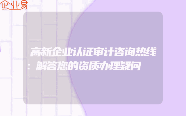 - 高新企业认证审计咨询热线:解答您的资质办理疑问