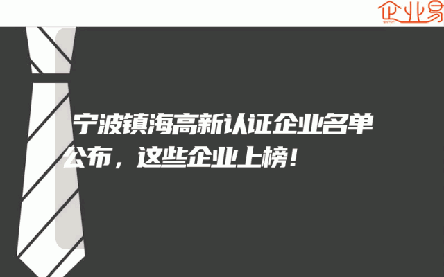 - 宁波镇海高新认证企业名单公布,这些企业上榜!