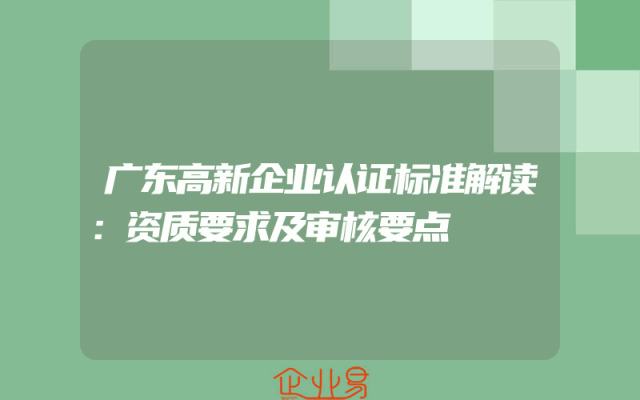 - 广东高新企业认证标准解读:资质要求及审核要点