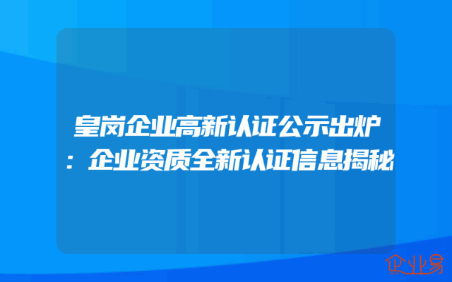 - 皇岗企业高新认证公示出炉:企业资质全新认证信息揭秘