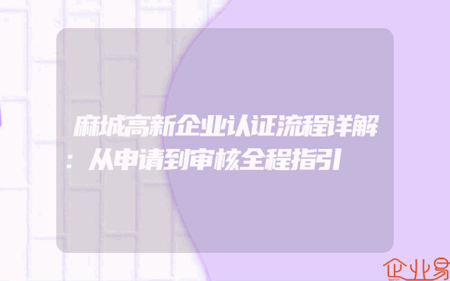 - 麻城高新企业认证流程详解:从申请到审核全程指引