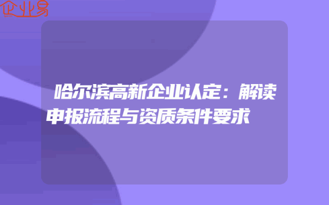 - 哈尔滨高新企业认定:解读申报流程与资质条件要求