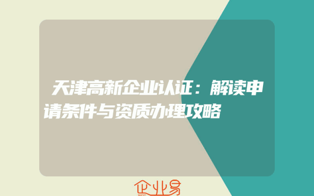 - 天津高新企业认证:解读申请条件与资质办理攻略