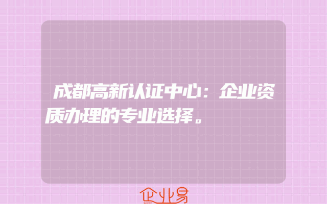 - 成都高新认证中心:企业资质办理的专业选择一、专业资质办理服务概述在当今竞争激烈的市场环境下,企业资质的重要性愈发凸显。作为成都地区领先的认证服务机构,成都高新认证中心致力于为企业提供全方位、专业化的资质办理服务。本中心熟知各类企业资质办理政