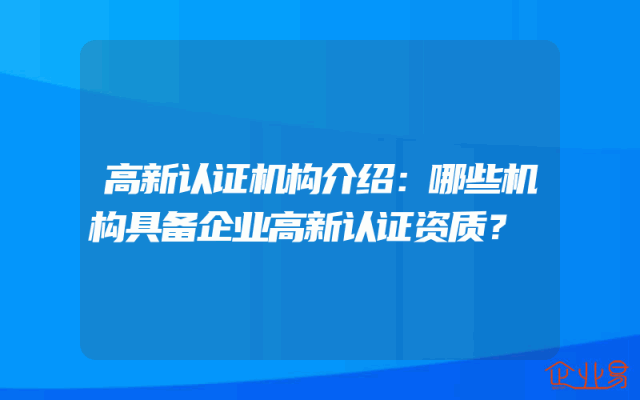 - 高新认证机构介绍:哪些机构具备企业高新认证资质?