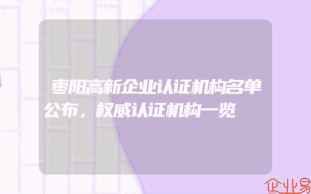 - 枣阳高新企业认证机构名单公布,权威认证机构一览