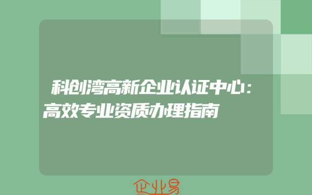- 科创湾高新企业认证中心:高效专业资质办理指南