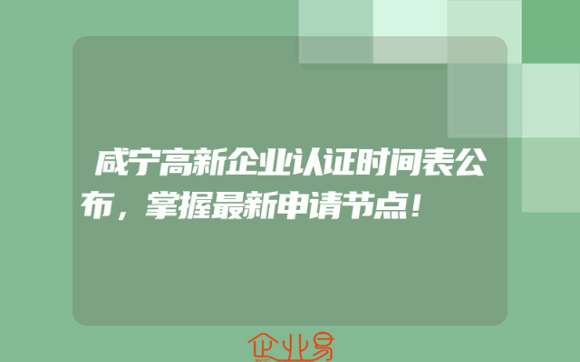 - 咸宁高新企业认证时间表公布,掌握最新申请节点!