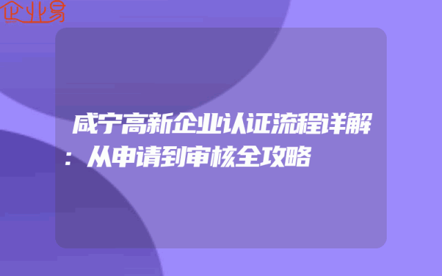 - 咸宁高新企业认证流程详解:从申请到审核全攻略