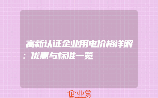- 高新认证企业用电价格详解:优惠与标准一览