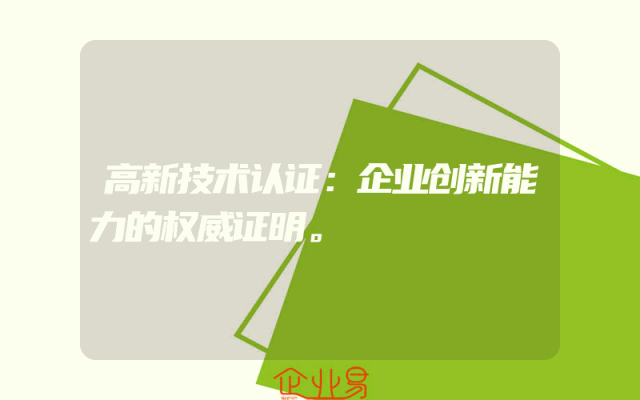 - 高新企业认证厂家名单及认证情况快速查询:深入了解最新进展一、高新企业认证的意义与背景在当今时代,科技创新能力已经成为企业竞争力的重要体现。高新企业认证作为国家层面对于企业科技创新能力的认可,不仅代表了企业的技术实力,更是企业参与市场竞争的重