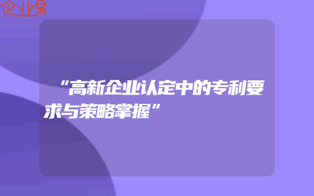 - “高新企业认定中的专利要求与策略掌握”