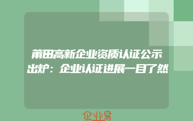- 莆田高新企业资质认证公示出炉:企业认证进展一目了然