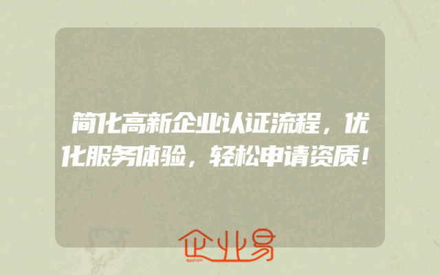 - 简化高新企业认证流程,优化服务体验——轻松申请资质一、理解高新企业认证的重要性对于众多追求创新发展的企业来说,获得高新企业认证是提升竞争力的重要途径。然而,传统的认证流程繁琐复杂,给企业带来了不小的困扰。因此,简化高新企业认证流程、优化服务