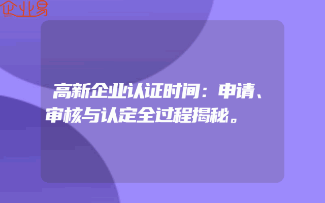 - 高新企业认证时间:申请、审核与认定全过程揭秘。