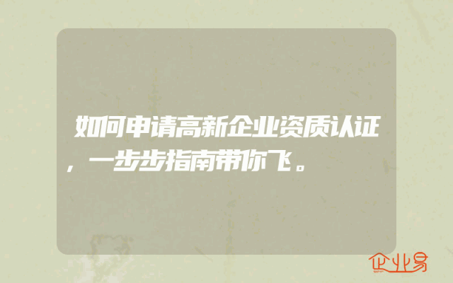 - 如何申请高新企业资质认证,一步步指南带你飞。