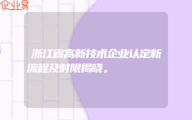 - 浙江省高新技术企业认定新流程及时限揭晓。