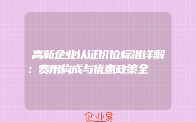- 高新企业认证价位标准详解:费用构成与优惠政策全