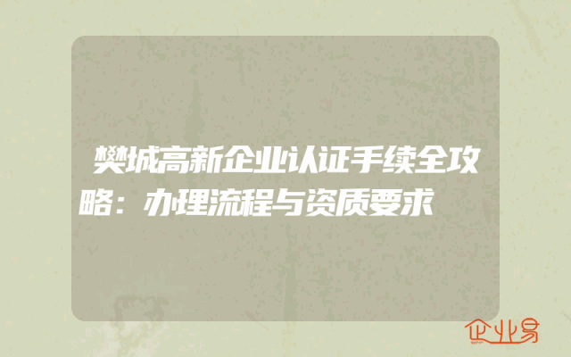 - 樊城高新企业认证手续全攻略:办理流程与资质要求