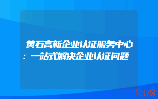 - 黄石高新企业认证服务中心:一站式解决企业认证问题